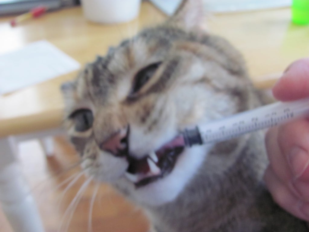 To give liquid medication you may be given a dropper or syringe to administer. Now you already have kittens so you likely are feeding them kitten pate to begin with but if youre not and youre using kibble try a teensy. Make sure you have the syringe positioned to squirt onto the back of your cats tongue from.